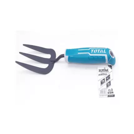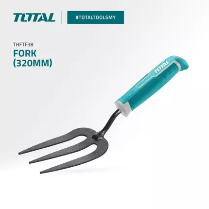 A garden fork, spading fork, digging fork or graip is a gardening implement, with a handle and several short, sturdy tines. It is used for loosening, lifting and turning over soil in gardening. Specifications: Brand: Total Model: THFTF38 Length: 320mm Unique design patent handle Width: 80mm Thickness: 2.5mm Material: carbon steel Weight: 0.20 kg Packed by paper card