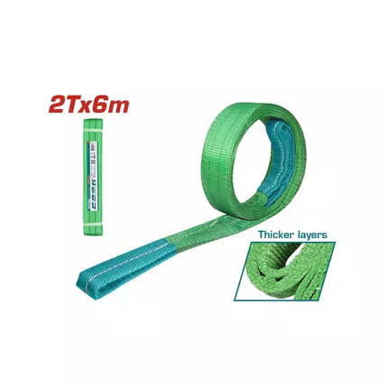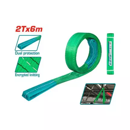 Specifications: Brand: Total Model: THTWS0206 Type: Sling Load: 2T Length: 6m Width: 60mm S.F.: 7:1 Economical & adaptable sling with no fixed wear points Packed by poly bag