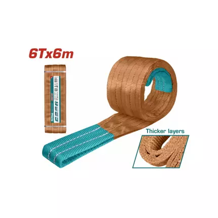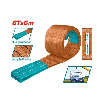 Specifications: Brand: Total Model: THTWS0606 Type: Sling Load: 6T Length: 6m Width: 180mm S.F.: 7:1 Economical & adaptable sling with no fixed wear points Packed by poly bag