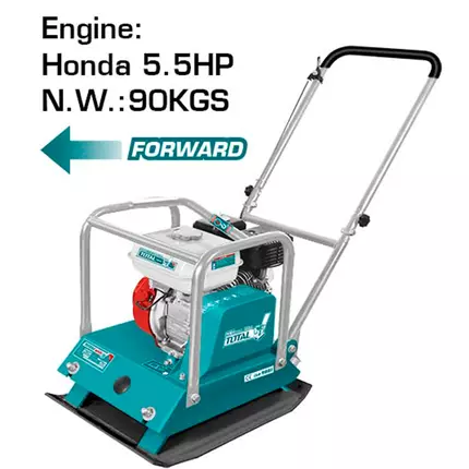 In construction projects that require a stable subsurface, plate compactors are used to compact some types of soil and gravel. If you're looking for a way to make your work easier, this is the product for you. A plate compactor is a powerful machine that can save you a lot of time. They are made to make sure your driveways, sidewalks, and surfaces are nice and flat. They are used to compress and level the concrete slabs that have been poured. They can also be used to make asphalt paving level. This machine can also be used to make new concrete slabs level. The plate compactor can also be used to tamp and compact gravel and sand on top of the asphalt or concrete slab. Plate compactors work best on granular soils, such as those that contain more sand or gravel. It may be beneficial to add some moisture to the soil before using the plate compactor. Specifications: Engine: Honda GX160 Engine power:4.0kW(5.5HP) Weight:90Kgs Frequency:4200VPM Centrifugal force:15kN Compaction depth:30cm Travel speed:45cm/s Efficiency:660㎡/Hr Plate size:56x44cm Packed by carton box