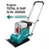 Specifications: Total Gasoline engine Displacement: 196cc Engine power: 4.8Kw(6.5HP) Weight: 60Kgs Frequency: 5600VPM Centrifugal force: 10.5kN Compaction depth: 20cm Travel speed: 40cm/s Efficiency: 450M2/Hr Plate size: 50x36cm Packed by carton box