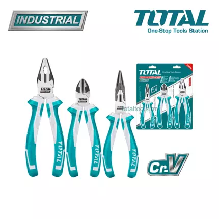 Specifications: 3pcs Pliers Set Model: THT2K0301 Industrial CR-V Black finish and polish Two color handle Packed by PP hanger Set Includes: Combination Plier: 200mm (8") Long Nose Plier: 160mm (6") Diagonal Cutting Plier: 160mm (6")