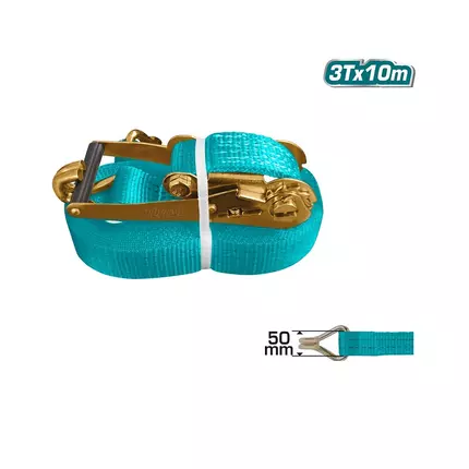 Specifications: Load: 3T Length:10m Width:50mm With ratchet and double j hooks Packed by strap