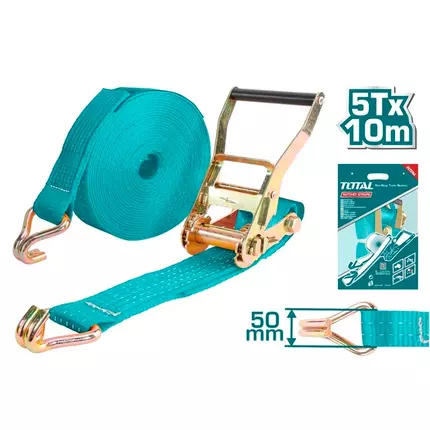 Specifications: Load: 5t Length:10m Width:50mm With ratchet and double j hooks Packed by strap