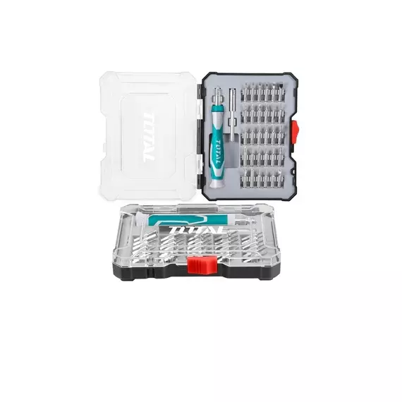 Specifications: 1Pcs TOTAL Style handle 1Pcs 4X60mm bits holder 30PCS 4X28mm bits: SL1.5,SL2,SL2.5,SL3,SL3.5,SL4,PH000,PH00,PH0,PH1,T4,T5,T6,T7,T8,T9,T10,T15,T20,H0.9,H1.3,H1.5,H2,H2.5,H3,H4,Y2,U2.6,Five Star0.8,Five Star1.2 Five Star0.8, Five Star1.2 is suitable for iPhone and iPad Packed by plastic box