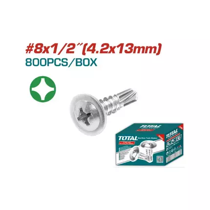 Features: Self-drilling points for easy penetration into materials Constructed from high-quality carbon steel for durability Truss head design provides enhanced gripping strength Phillips drive type for compatibility with Phillips screwdrivers Zinc-plated finish offers corrosion resistance Packed in a color box for convenient storage and organization Specifications: Brand: Total Type: Screws 8x1/2" Drilling Points Material: High-Quality Carbon Steel 800pcs in Color Box Truss Head Phillips Drive Zinc Plated Finish Packed by Color Box