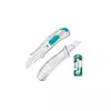 Total THT511807 Retractable Blade Knife is used for cutting paper, cardboard, wallpaper, thin carpets and other materials. The contoured handle provides a secure grip without slipping. The blade is made of Japanese carbon steel - SK-5. The stylish body emphasizes all the positive aspects of the model. Specifications: Type: Snap-off blade knife Material: Aluminum Alloy Body Length: 152mm Packing sliding card f With 1pcs SK5 blades Design: retractable Blade length: 100mm Blade width: 18mm