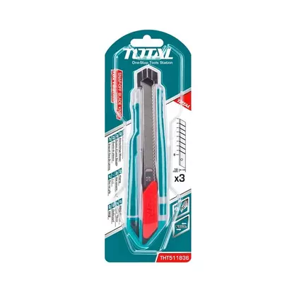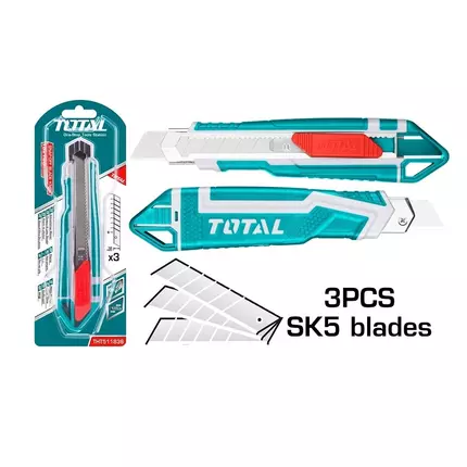 Specifications: Blade Size: 18mm x 100mm With 3 pcs SK5 blades Length: 169mm With flat push button Packed by sliding card