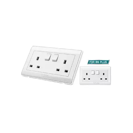 Specifications: Product size: 147*86mm Installation size: 120mm 2-Gang 13A BS socket 13A 250V~ Weight: 0.19kg Single pole switch Packed by plastic bag