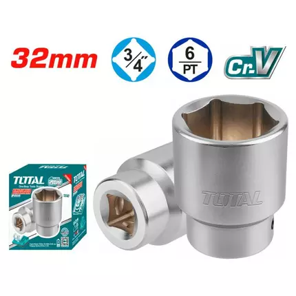 Total Tools 3/4 inch hexagonal socket head is a tool widely used in the mechanical, construction and automobile repair industries. This product is designed to suit the needs of repair and maintenance professionals. Features: Material: Made from high quality 50BV30 alloy steel with good rust and abrasion resistance. Size: With a standard size of up to 32mm and a length of up to 55mm, this product can meet most customer requirements. Design: The hexagonal tube head is chrome plated and heat treated to increase the product's durability and bearing capacity. Packaging: The product is packaged in a beautiful color box, convenient to use and store. Maintenance methods: After use, clean the product with a non-acid or alkaline solvent to remove dust and other impurities. Use special maintenance agents to increase product life and usability. Note safety when using: Do not use the product beyond the specified load capacity. Always test the product before use to ensure safety. Wear protective glasses when using to avoid unwanted accidents. Specifications : Brand: Total Type: Hexagonal Socket Hexagonal Socket Size: 3/4" (32mm) Length: 55mm Material: 50BV30 Finish: Chromed Plated Heat Treatment Packaging: Color Box