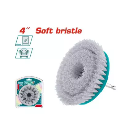 Specifications: Brand: Total Model: TACS1401 Type: Cleaning Brush 4" Soft bristle brush Shank: 1/4" Hex Ideal for cleaning: glass, plastic, laminate, flooring, porcelain, granite, tile, carpet Packed by double blister