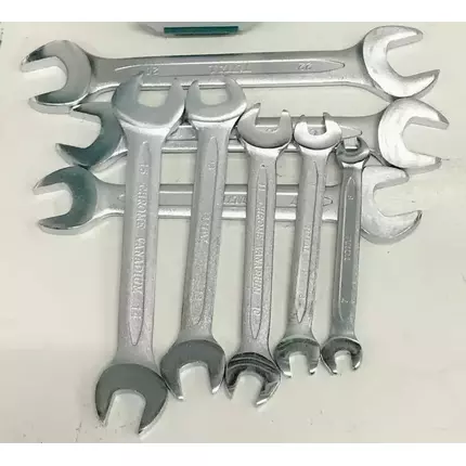 Specifications: 8pcs double open end spanner set Size : 6-22mm 6 x 7mm , 8 x 9mm , 10 x 11mm 12 x 13mm 14 x 15mm 16 x 17mm 18 x 19mm 20 x 22mm Fine polished Packed by plastic hanger