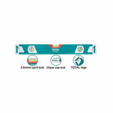 Specifications: Length:60cm V-shape slot for measuring cylinder objects Double side milled 0.5mm/m accurate vials Aluminum thickness:1.5mm Packed by color sleeve