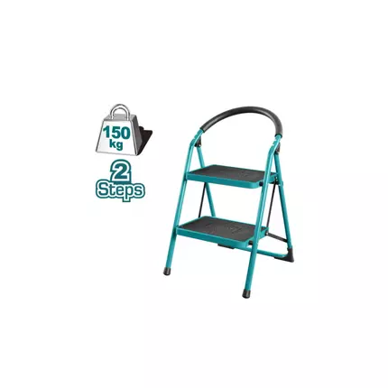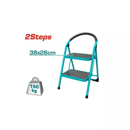 This steel ladder is used for working in low places. It has a wide section of the working step, folds and unfolds easily. Due to the soft base, the ladder does not slide on the floor. Specifications: Brand: Total Model: THLAD09021 Type: Ladder Material: steel Steps: 2 Steps Step size: 380x260mm Open Size: 510x485x775mm Max.Load: 150kg Packed by carton box