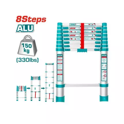 Total Telescopic Ladder with 8 Steps, Aluminium Body, Easy Carry THLAD08081