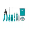 Specifications: The package comes with, 1 pc Long nose pliers, 4.5″ 1 pc Cross-cutting pliers, 4.5″ 1 pc Scissors, 5.5″ 1 pc Wire stripper 1 pc Slotted screwdriver, SL5.5 * 100mm 1 pc Phillips screwdriver, PH1 * 100mm 1 pc Test pen, 140mm 1 pc Snap-off blade knife 1 pc Tweezers, 125mm 1 pc PVC insulating tape, 18mm * 9.15m 1 pc Tools bag