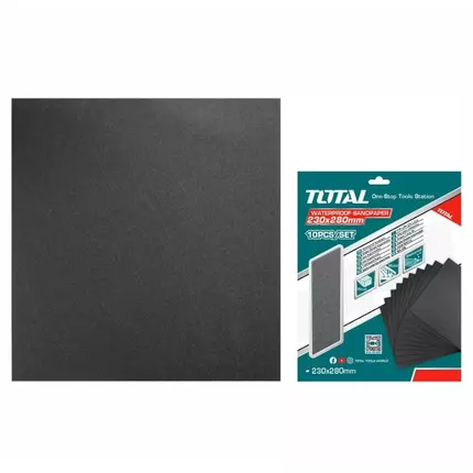 Specifications: Brand: Total Size: 230x280mm 10pcs/set Grit: P100 Material: Silicon Carbide Waterproof Match with most of the hand sanders Suitable for sanding wood, wall, paint, plastic, stone, metal, and glass Packed by color box