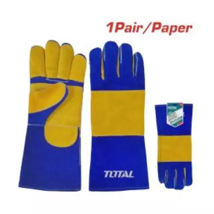 Specifications: Brand: Total Type: Heat-Resistant Leather Gloves Size: 16 Inch Heat Resistance: Can withstand 350 degrees Material: AB Grade Royal Red Leather (Palm and Back with Blue Leather) Design: White Diagonal Neck with Mixed Velvet Lining Inside Construction: Kevlar Fire Thread Sewing Special Feature: Can prevent sparks from splashing Packaging: Poly Bag