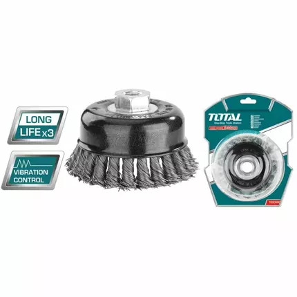 Total Wire Cup Brush with Nut 75mm Twisted Hard Silver TAC32035
