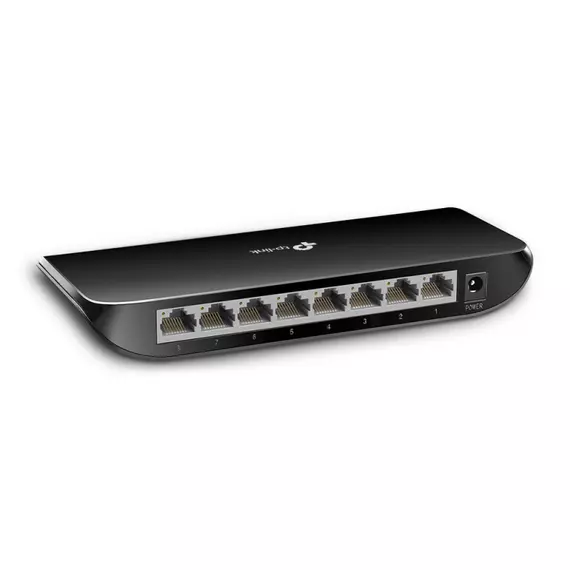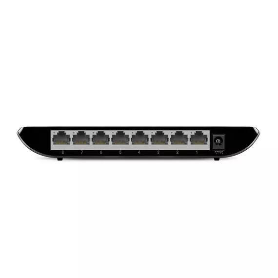 What This Product Does The TP-Link 8-Port Gigabit desktop switch TL-SG1008D provides you an easy way to make the transition to Gigabit Ethernet. Increase the speed of your network server and backbone connections, or make Gigabit to the desktop a reality. Moreover, TL-SG1008D adopts lower power consumption design. With the innovative energy-efficient technology, the TL-SG1008D can save power consumption, making it an eco-friendly solution for your home or office network. Gigabit Switch Featured with 8 10/100/1000Mbps ports, TL-SG1008D greatly expands your network capacity, enabling instant large files transferring. So, power users in the home, office, workgroup, or creative production environment can now move large, bandwidth-intensive files faster. Transfer graphics, CGI, CAD, or multimedia files across the network instantly. Go Green With Your Ethernet You now have the choice to go green when upgrading to a gigabit network! This new generation TL-SG1008D 8-Port Gigabit Desktop Switch features the latest innovative energy-efficient technologies that can greatly expand your network capacity with much less power. It automatically adjusts power consumption according to the link status and cable length to limit the carbon footprint of your network. Power down Idle Ports When a computer or network equipment is off, the corresponding port of a traditional switch will continue to consume considerable amounts of power. The TL-SG1008D can automatically detect the link status of each port and reduce the power consumption of ports that are idle. Power Budget According to Cable Length Ideally, shorter cable would use less power because of less power degradation over their length; this is not the case with most devices as they will use the same amount of power across the cable regardless of the length. Easy to Use The auto features of this gigabit switch make installation plug and play and hassle-free. No configuring is required. Auto MDI/MDIX eliminate the need for crossover cables. Auto-negotiation on each port senses the link speed of a network device (either 10, 100, or 1000 Mbps) and intelligently adjusts for compatibility and optimal performance. Features: 8 Gigabit Auto-Negotiation RJ45 ports, Supports Auto MDI / MDIX Green Ethernet technology saves on power consumption IEEE 802.3x flow control provides reliable data transfer Plastic case, desktop or wall-mounting design Plug and play, no configuration required Specifications : HARDWARE FEATURES Standards and Protocols: IEEE 802.3i/802.3u/ 802.3ab/802.3x Interface: 8 10/100/1000Mbps RJ45 Ports AUTO Negotiation/AUTO MDI/MDIX Fan Quantity: Fanless Physical Security Lock: No External Power Supply: External Power Adapter (Output: 9VDC/0.6A) Jumbo Frame: 15 KB Switching Capacity: 16 Gbps Dimensions ( W x D x H ): 7.1 * 3.5 * 1.0 in. (180 * 90 * 25.5 mm) Max Power Consumption: 4.63W(220V/50Hz) Max Heat Dissipation: 15.80BTU/h SOFTWARE FEATURES Transfer Method: Store and Forward MAC Address Table: 4K Advanced Functions: Green Technology 802.3X Flow Control Back Pressure 802.1p/DSCP QoS (for V7 and later version) OTHERS Certification: FCC, CE, RoHs Package Contents: 8-Port Gigabit Desktop Switch TL-SG1008D Power Adapter Installation Guide Operating Temperature: 0℃~40℃ (32℉~104℉) Storage Temperature: -40℃~60℃ (-40℉~140℉) Operating Humidity: 10%~90% non-condensing Storage Humidity: 5%~90% non-condensing