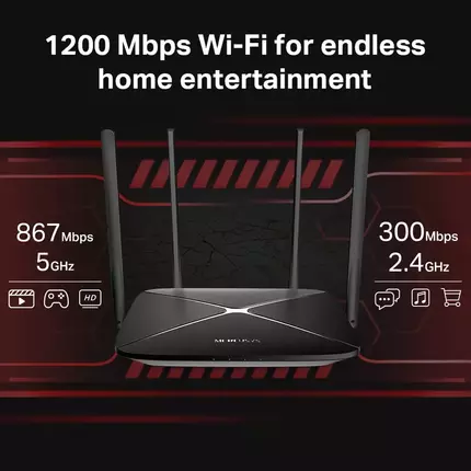 AC1200 dual band Wi-Fi — speeds of up to 300 Mbps on the 2.4 GHz band and 867 Mbps on the 5 GHz band Full gigabit ports — lightning-fast connections for wired devices, including game consoles, STBs, smart TVs and more Share with up to 60 devices — internet access for multiple streaming simultaneously 4 high gain external antennas — powerful wireless coverage throughout your house Easy installation — intuitive webpage guides you through the setup process in minutes Live Your Digital Life at Warp Speed AC1200 Wireless Dual Band Gigabit Router 1200 Mbps Wi-Fi for endless home entertainment Internet entertainments arrive at a warp speed with the powerful AC1200 dual band Wi-Fi. For multiple streaming simultaneous, 300 Mbps over the 2.4 GHz band is great for streaming music and shopping online, while 867 Mbps over the 5 GHz band covers bandwidth-intensive tasks like HD streaming and gaming. Gigabit Speed for Lightning-Fast Surfing Lightning-fast wired connections are delivered by four built-in gigabit Ethernet ports. Enjoy lag-free gaming, smooth HD video streaming, and high-speed file downloading. eliably Connect up to 60 Devices, Simultaneously Easily share reliable wireless connection with up to 60 wireless devices, such as phones, tablets, and smart home devices, at the same time. Perfectly cover all network needs whether there is a party in the house or a barbecue in the yard. Strong Signal,Great Coverage Four external 5 dBi antennas provide users with broader wireless coverage and wireless signal intensity capable of extending throughout your large home or office. Make weak, dropped connections a thing of the past. Ready for Smooth IPTV IGMP Proxy/Snooping, Bridge, and Tag VLAN technology allow streaming to transfer through certain gigabit LAN ports, optimizing Hi-Resolution video. Easy Three-Step Installation Simply follow the step-by-step instructions on the intuitive webpage to set up your AC12G in minutes—no need for complicated configuration: 1 / Create a unique login password 2 / Choose your internet service and enter the required information 3 / Set your wireless network name (SSID) and password Advanced Security WPA/WPA2 encryption creates an active defense against security threats and intruders 2×2 MIMO Increases wireless transmission efficiency between multiple devices Guest Network Keep your main network secure with a separate network for guests Maximum wireless signal rates are the physical rates derived from IEEE Standard 802.11 specifications. Actual wireless data throughput and wireless coverage are not guaranteed and will vary as a result of 1) environmental factors, including building materials, physical objects, and obstacles, 2) network conditions, including local interference, volume and density of traffic, product location, network complexity, and network overhead, and 3) client limitations, including rated performance, location, connection, quality, and client condition. Actual network speed may be limited by the rate of the product's Ethernet WAN or LAN port, the rate supported by the network cable, Internet service provider factors and other environmental conditions.