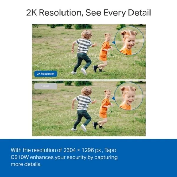 - 2K Resolution: With the resolution of 2304 1296 px , TAPO C510W enhances your security by capturing more details compared with traditional 1080p (1920 1080 px).