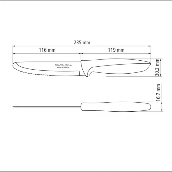 Barbecue with friends will be much more special with the Tramontina Plenus jumbo barbecue knife with stainless steel blade and 5-inch black polypropylene handle. Designed for cutting roasted meats, its blade is made from heat-treated stainless steel and has a serrated edge, which makes cutting easier and guarantees greater durability to the edge. Its handle is made of polypropylene and, together with its other features, allows it to be placed in the dishwasher, optimizing your tasks!