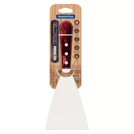The Tramontina 5-inch scraping spatula with stainless-steel blade and treated red Polywood handle is essential to help you prepare food on the griddle! Designed with an excellent-quality stainless-steel blade, it ensures total quality and precision for frying and grilling. Its handle is made of treated Polywood secured with aluminum rivets, offering comfort and safety in addition to a sophisticated look. It is a versatile spatula that can also be used for scraping and removing food scraps, whether on a griddle, grill or even in a sauce pan!