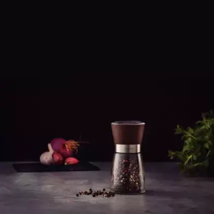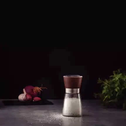 Before first use, wash the item well and dry it. Be careful when handling the container. As it is made of glass, it may break if dropped or impacted. For greater durability of the product, it is recommended to wash manually with neutral detergent or soap. Dry well before storing or before reseasoning. To dispose of the product and packaging, follow current recycling guidelines. To refuel: unscrew the glass container, holding the stainless steel ring. Add coarse salt or pepper. Screw the glass container back on, holding the stainless steel ring until it is firmly attached to the ring. To grind: remove the transparent plastic cover and position the grinder upside down. With one hand, hold the lid and with the other hand, turn the glass container clockwise to grind the seasoning.