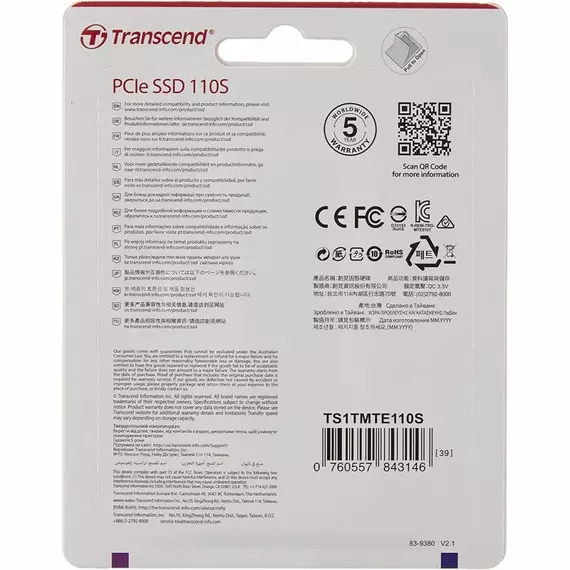 Transcend's PCIe SSD 110S utilizes the PCI Express® Gen3 x4 interface supported by the latest NVMe™ standard, to unleash next-generation performance. The PCIe SSD 110S aims at high-end applications, such as digital audio/video production, gaming, and enterprise use, which require constant processing of heavy workloads with no system lags or slowdowns of any kind. Powered by 3D NAND flash memory, the PCIe SSD 110S gives you not only fast transfer speeds but unmatched reliability. Specification: Item Weight 0.288 ounces Product Dimensions 3.15 x 0.87 x 0.14 inches Item Dimensions LxWxH 3.15 x 0.87 x 0.14 inches Flash Memory Size 1 TB Hard Drive Interface NVMe