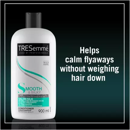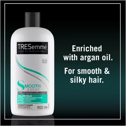 The TRESemmé Silky Smooth Shampoo and hydrating Conditioner system delivers moisture where your hair needs it most, calming frizz and flyaways without weighing hair down. This Conditioner for Frizzy hair is enriched with Moroccan argan oil cleanses and helps tame unruly hair, leaving it smooth and salon-soft. This deep conditioner is light enough for daily use.