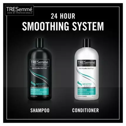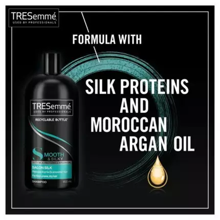 You can now get that style without having to go to a salon with the Tresemme Silky & Smooth Shampoo and Conditioner system. Enriched with silk proteins and Moroccan argan oil this advanced smoothing system targets dryness and locks in moisture where your hair needs it most calming frizz and flyaways without weighing hair down. Tresemme Silky & Smooth Shampoo for dry hair makes it easy to achieve a covetable and confident style. The end result? Polished salon-soft hair thats 2x smoother* and more manageable. For silky-smooth flyaway-free hair with a healthy-looking shine start your routine by applying a generous amount of Tresemme Silky & Smooth Shampoo to wet hair. Gently massage the scalp with your fingertips to work into a lather then rinse thoroughly. Follow with our Silky & Smooth Conditioner and style with your favourite Tresemme styling products as needed. At Tresemme weve always believed that style is an important part of who you are and embracing your personal style helps you achieve whatever it is you set out to do. Tresemmes expertise in professional-quality hair care and styling products means that everyone can achieve salon results at home and own their personal style. Every choice we make is informed by our brand values and the latest salon trends. Our unique formulas are the result of years of consumer and scientific research with every ingredient having been carefully selected to ensure your hair receives the best possible care and end look. Tresemmes entire portfolio is globally approved by PETA so you can own your personal style whilst knowing that we do not test on animals. *with Tresemme Silky & Smooth Shampoo and Conditioner vs a non-conditioning hair shampoo