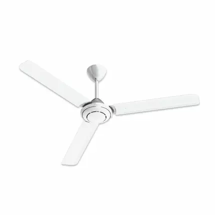 This ceiling fan has aerodynamic blades for a strong silent breeze, a built-in thermal fuse to guard against overheating and a built-in safety wire for extra protection. Comes in white with two silver rings to add to its charm. Key Features: Color: White Wattage: 75W Voltage: AC 220-240V Dimensions: 1422mm Installation: To be set up by a qualified technician Material: Aluminum Additional Features: IP21 Application: Domestic Use