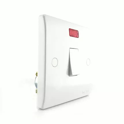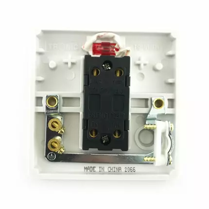 This Standard range Tronic 20A double pole switch in white, is slim, has smooth edges, it has a shiny surface and has a neon indicator to fit into the modern style of ones home or office. Tronic double pole switches make it possible to isolate appliances safely. A 20A double pole switch is suitable for small ovens and other smaller appliances. Specification: Color : White Current : 20A Voltage : AC 220-240V Dimensions : H 90mm x W 90mm Material : Bakelite Installation : Fully Assembled Suitable for : Bathroom and Kitchen