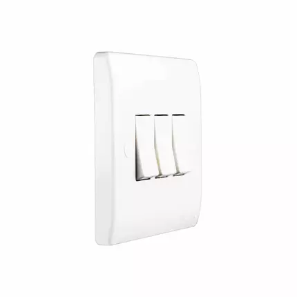 This standard range Tronic 3 gang 1 way switch in white has smooth edges to fit into the modern style of ones home or office. Specification: Color : White Current : 10A Voltage : AC 220-240V Dimensions : H 90mm x W 90mm Material : Bakelite Installation : Fully Assembled Application : Suitable for Installation by the Entrance