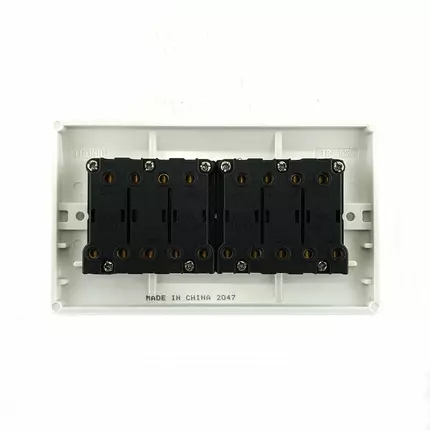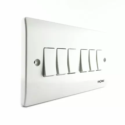 This standard range Tronic 6 gang 2-way switch in white has smooth-edges that fit into the modern style of ones home or offices. 2-way switch/switching means there can be more than one place you can turn your light/s on or off while gang refers to the number of switches. It is suitable for both domestic and commercial applications. The dimensions for this product measure at 90mm x 120mm (H x L). Specification: Color : White Current : 10A Voltage : AC 220-240V Dimensions : H 90mm x W 120mm Material : Bakelite Installation : Fully Assembled Application : Living Room and Bedroom