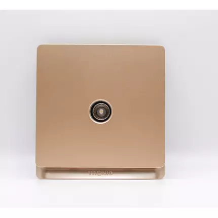 This premium range Tronic television socket in gold provides a screwless finish, is slim, has smooth edges and has a shiny surface to fit into the modern style of ones home or office. Television sockets are used to provide the connection between a television or signal receiver and the cable that runs to the aerial. They are commonly referred to as aerial or coaxial sockets and are typically found in most homes as well as commercial premises. Specification: Colour: Gold, Grey, Ivory & Black Amp: 16A Voltage: AC 220-240V Item Dimensions: H 90mm x W 90mm Material: Polycarbonate Installation: Assembled Application: Living room and Bedroom