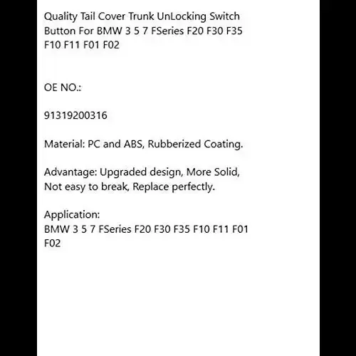 5 Series Trunk Button Compatible With Bmw 5 Series Trunk Button 5 Series F10 2010-2017 1 Series F20 2011-2019 3 Series F30 2012-2018 7 Series F02 2009-2016