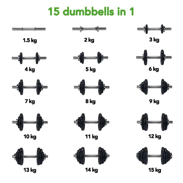 The benefits of the Tunturi Dumbbell Set - Dumbbell set - 15 kg. - Black