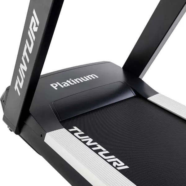 The Tunturi Platinum TR20 Treadmill has a special, thick diamond texture running belt of 2.2 millimeters. This orthopedic running belt is thicker, provides extra cushioning and is more durable. In addition, this tread has a non-slip layer for extra grip and stability especially when training at high speeds. The side landings on the left and right sides of the treadmill, where you can rest your feet while the belt is moving, are made of heavy aluminium