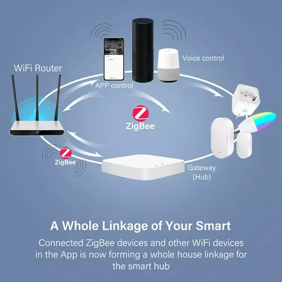 Tuya Smart Gateway Hub multi-mode smart home bridge WiFi Bluetooth ZigBee APP wireless remote control Alexa Google home Features: The brain of smart home automation. Support Alexa.Google home voice control. Link other smart devices in the app for local scenario connectivity and automation. Much safer to build a smart home system with smart home automation. Wireless remote control your smart devices under the same interface for added convenience. Adding sub-devices without network access and multiple sub-devices accessing the network-work simultaneously. Standard protocol development based on ZigBee3.0 and Bluetooth SIG standard protocol for smart life/TUYA application. The gateway allows you to control Tuya ZigBee/Bluetooth devices such as plugs, switches, light bulbs and sensors. A must for all Tuya ZigBee products. Multi-mode gateway supports Wi-Fi + Bluetooth + Zigbee multi-protocol communication. Bluetooth mesh (SIG) and Zigbee communication provide stable control of 128 devices.