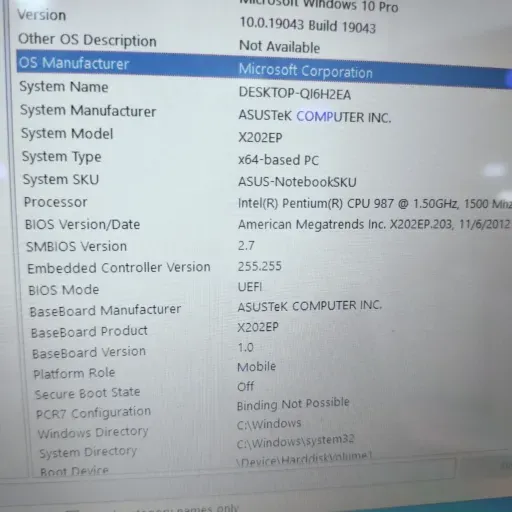 Uk Used Asus X202EP Laptop Intel Pentium 500: Storage 4gb ram -Touchscreen