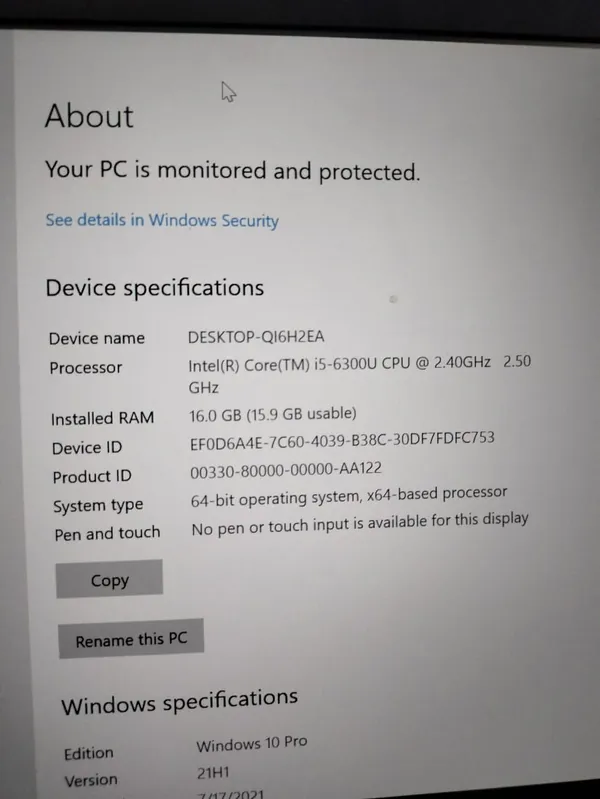 Processor : Intel Core i5-6300U @ 2.40GHz 2.50Hz