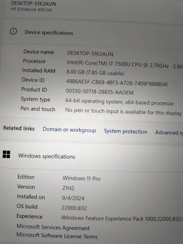 UK Used Hp Elitebook 850 G4 Intel core i7 Vpro SSD 256GB _. 8GB RAM , Turbo Boost processor _ 4GB Total HD Graphics Display, Slick Ultrabook PC.- Keyboard light