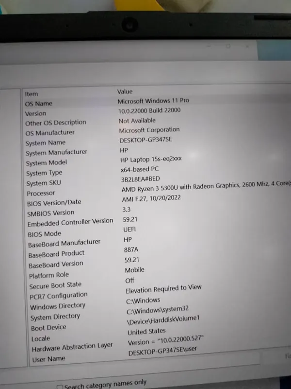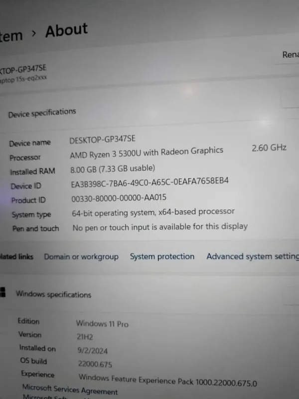 UK Used Hp Laptop 15s-eq2xxx AMD Ryzen 3 5300U 512GB SSD _ 8GB RAM Intel HD 4GB Total Graphics memory Ultra slickbook windows 11 PC.