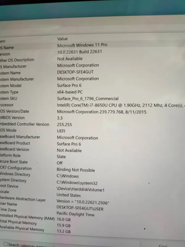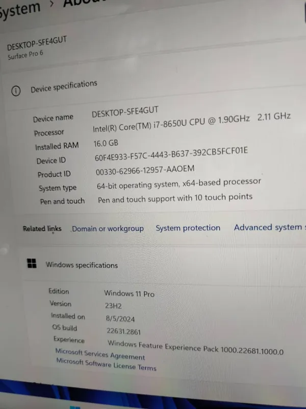 Uk Used Microsoft Surface pro 6 Core i7 8th Gen. 16GB RAM 512GB SSD