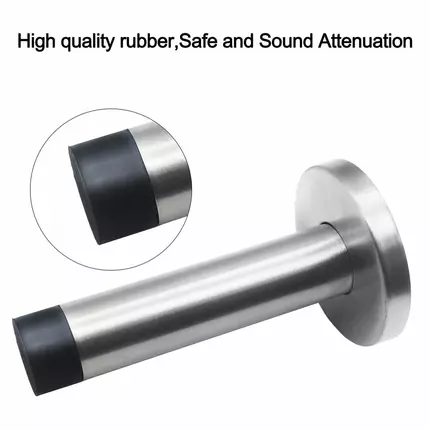 Features: Stainless Steel Wall Mounted Door Stop Stainless Steel Finish Weight: 0.2 Kg Fixed to the wall, to keep it from damaging the wall. Specifications : Finis: Stainless Satin Steel Manufactured from Grade 304 steel Measurements: 19 x 90mm Available in SS finish as standard Screw in design
