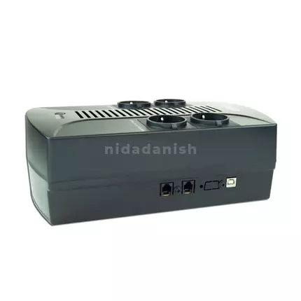 Feature Uninterruptable 850 VA power supply with modified sine wave output Automatic AC voltage regulation (AVR) Intelligent surge-, overload- and short-circuit protection on all 4 sockets USB port for PC connection Audible and visual alarms LED status indication Intelligent battery management with overcharge and over-discharge protection Wall mountable