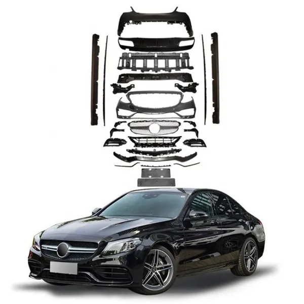 COMPATIBLE WITH MERCEDES BENZ C CLASS W205 2015-2023 UPGRADE CONVERT TO C43 AMG BODYKIT BUMPER SIDE SKIRTS DIFFUSER AFTER LIP TIPS
