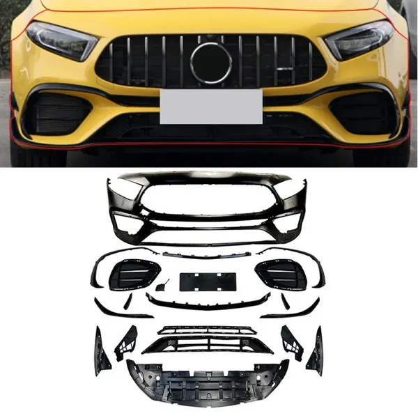 Upgrade Convert Upgrade to Amg45 Front Bumper Bodykit Skirts Lips Splitter A45 Style Zst W177-003 GC CC-6166 Compatible With Mercedes Benz A Class W177 2018-2023